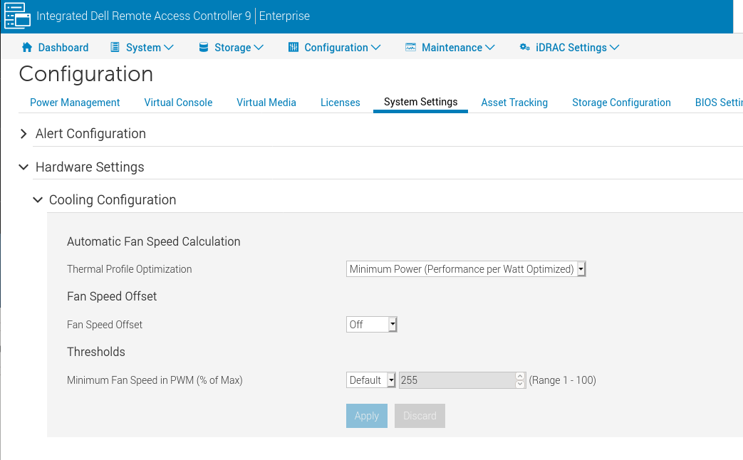 - Set your system to 'Minimum Power' and disable the 'Fan Speed Offset':